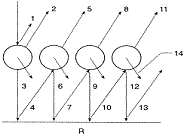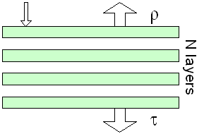 Tucker and Garatt (1977) proposed an original stochastic model, LFMOD1, where the radiation transfer is simulated by a Markov chain. A black maple leaf is partitioned into two independent tissues, a palisade parenchyma and a spongy mesophyll. Four radiation states (solar, reflected, absorbed, and transmitted) are defined, as well as the transition probabilities from one radiation state to another, between the different compartments. These probabilities are set on the basis of the optical properties of the leaf material. Starting with an initial state vector representing the incident radiation, the steady state is computed by iteratively applying the one-step transition matrix, and yields both the reflectance and transmittance.