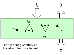leaf as a slab of diffusing (scattering coefficient s) and absorbing